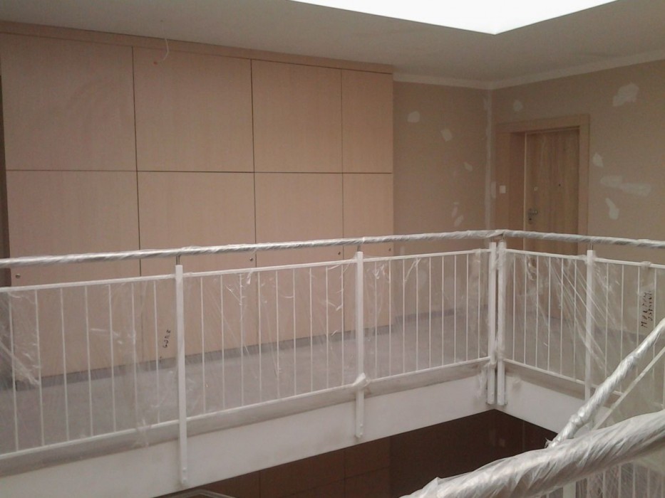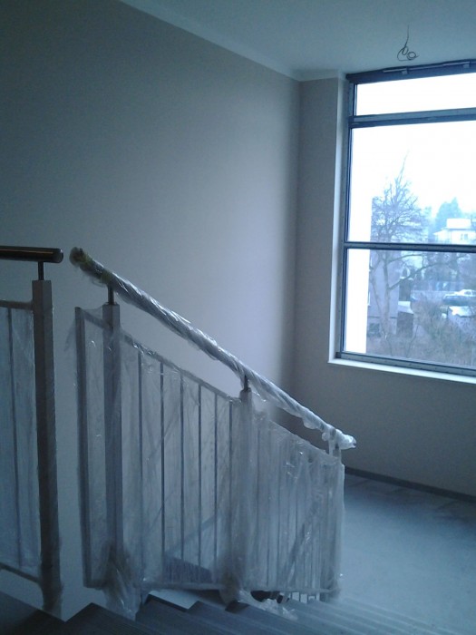 Kontynuowany jest montaż wypełnień ze szkła bezpiecznego na balkonach.