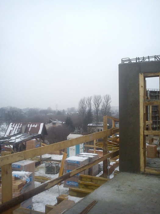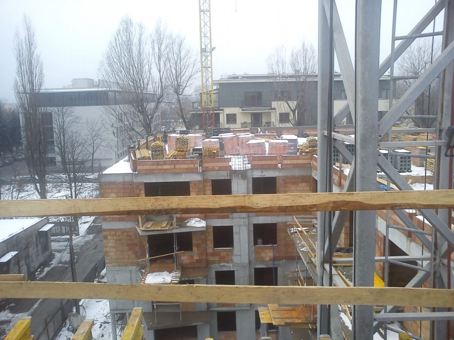 W minionym tygodniu trwały prace związane z zakończeniem ścian żelbetowych i murowanych ostatniej kondygnacji. Zakończono betonowanie większości attyk od strony zachodniej. Twają prace murarskie ścianek działowych w klatkach A i B. Na przyszły tydzień zaplanowano rozpoczęcie prac związanych z wjazdem do garazu podziemnego oraz wylewanie stropodachu nad klatką B i C.