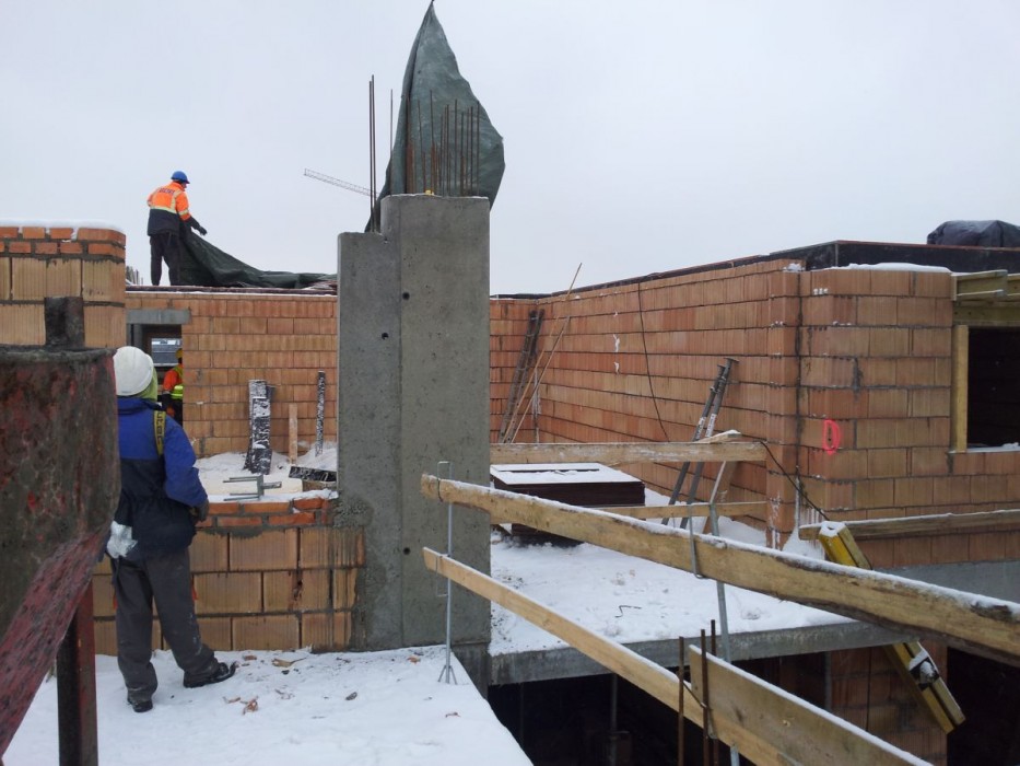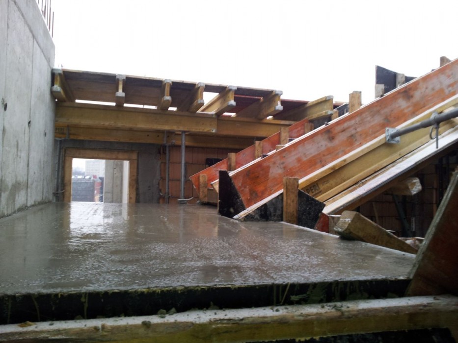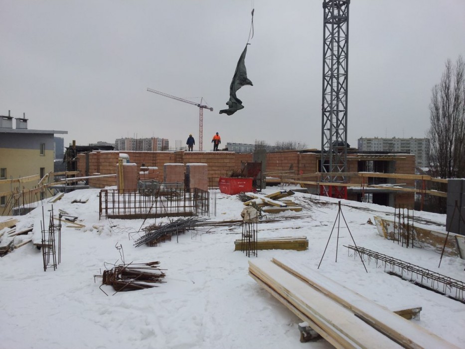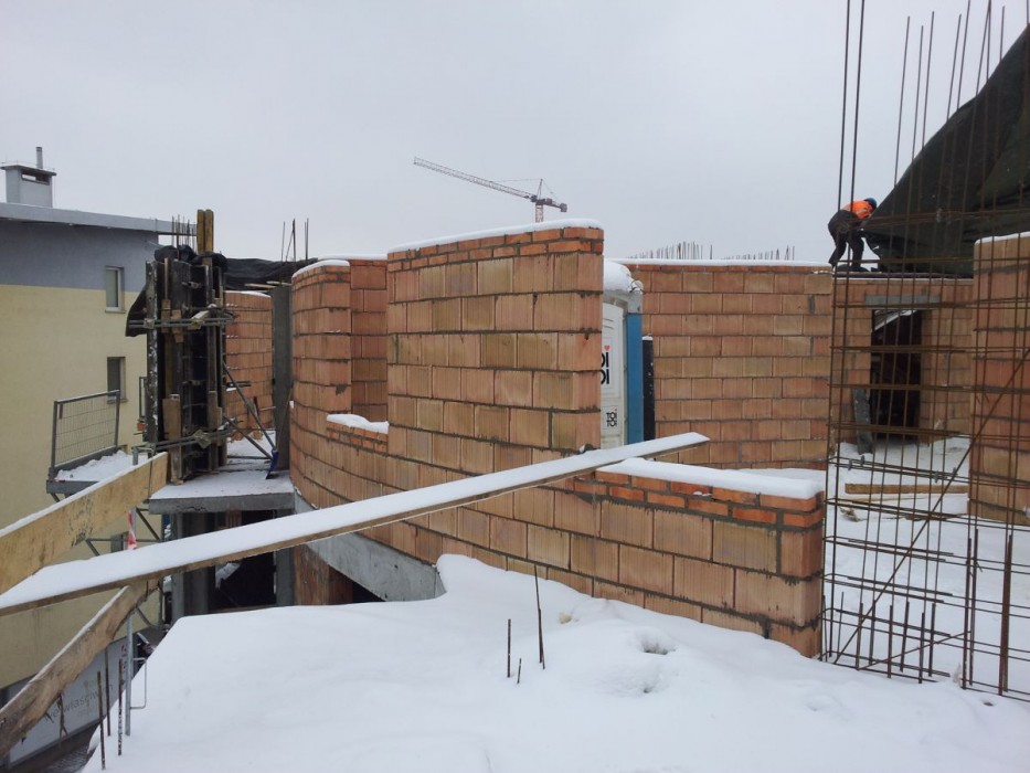 Zakończono wylewanie płyty nad ostatnim pietrem klatki C, wykonano attykę na klatce C, trwa jej wykonywanie na klatce B.Zakończono stawianie ścian działowych w klatkach A i Bdi II piętra, trwa ich wykonywanie na II piętrze klatki C. Wylano schody na IV piętro klatki A, wykonano 50% słupów żelbetowych na IV piętrze klatki A, rozpoczęto szalowanie stropu nad IV piętrem.