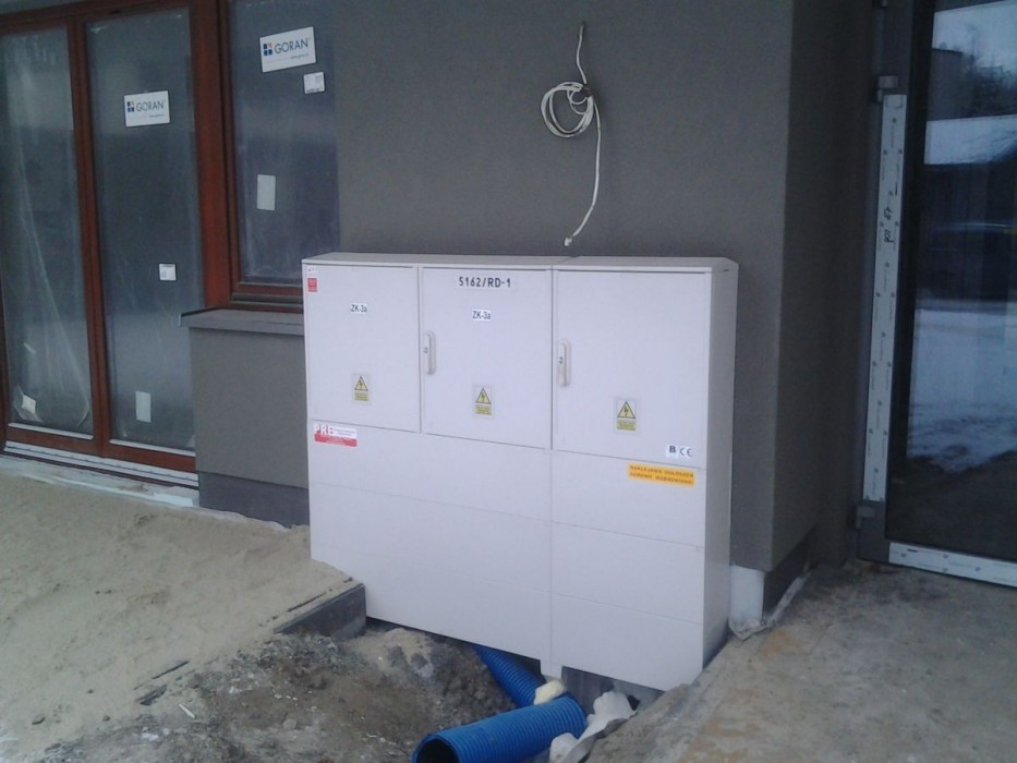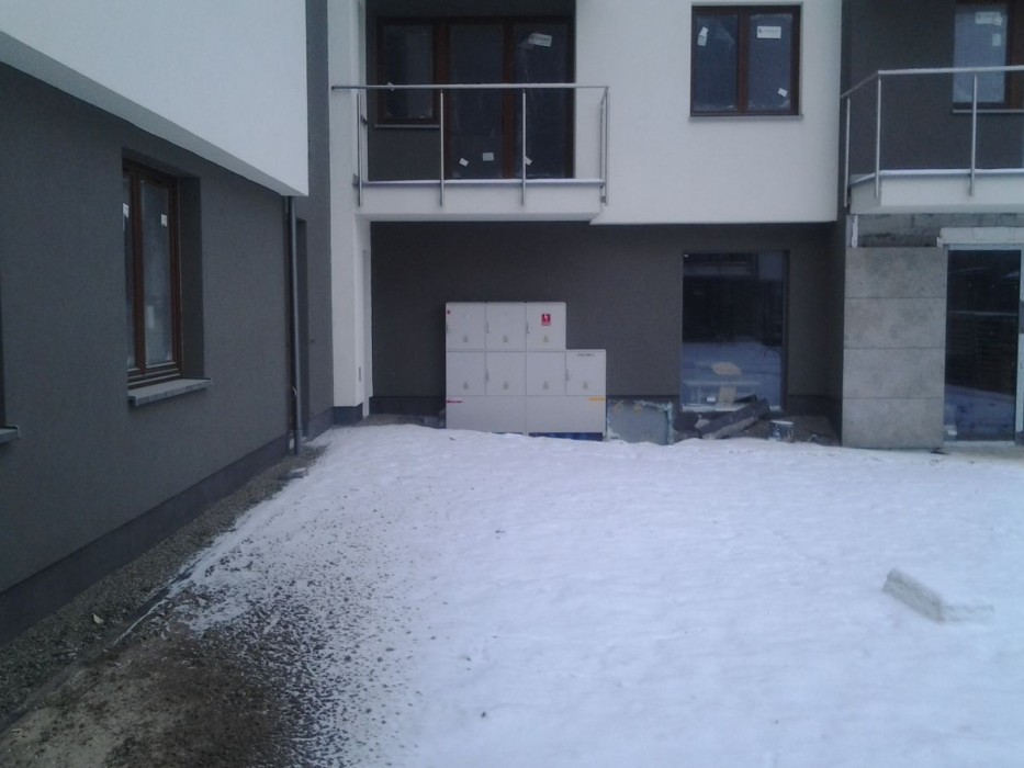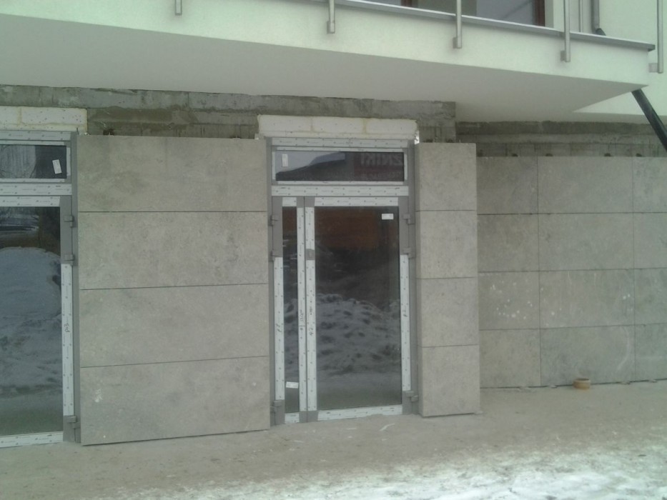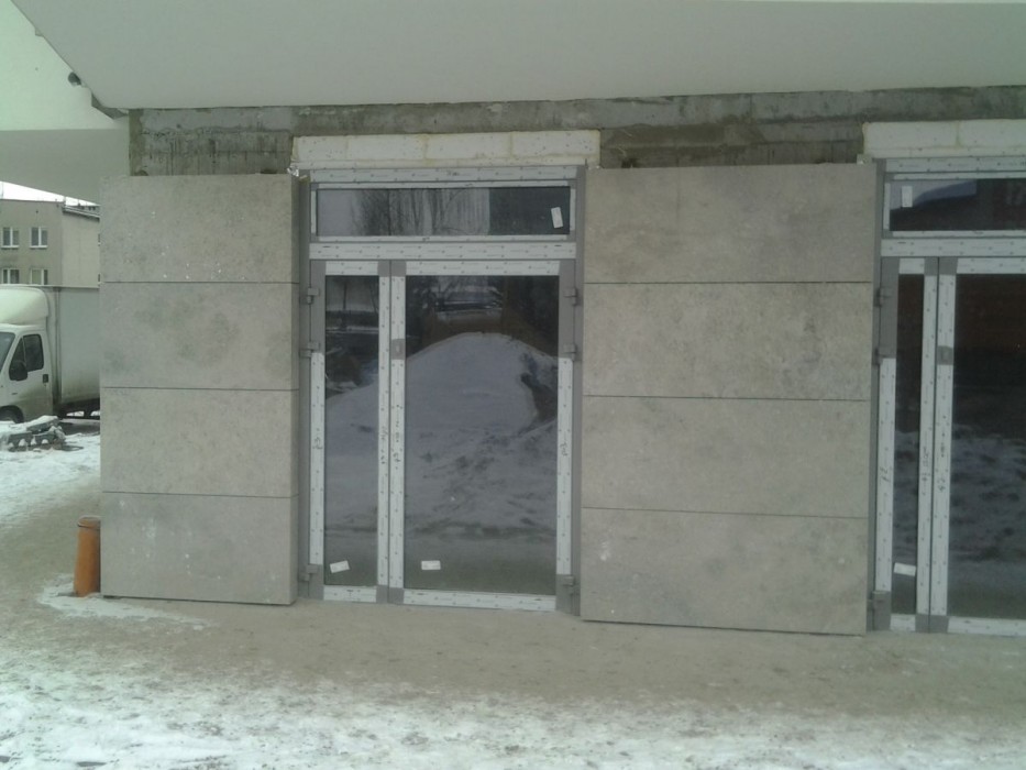 Trwają prace zwiazane z montażem osprzętu elektrycznego i okładziną zewnętrzną lokalu handlowych.