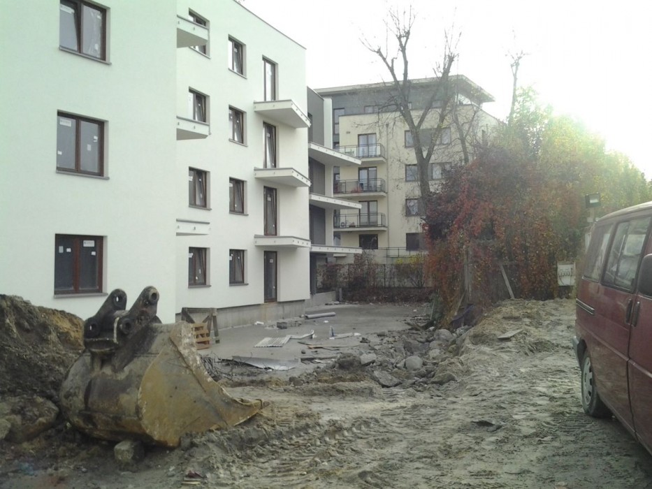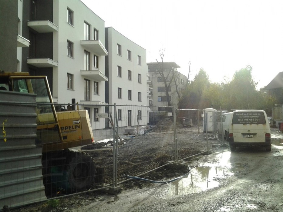 Rozpoczęto prace związane z przyłączami mediów do budynku oraz wykonywaniem zbiornika retencyjnego. Trwa flizowanie części wspólnych klatki A. Zakończono montaz dźwigu osobowego w klatce B oraz rozpoczęto montaż w klatce C. Trwają prace instalacyjne w garażu.