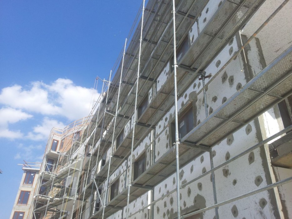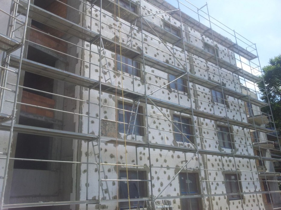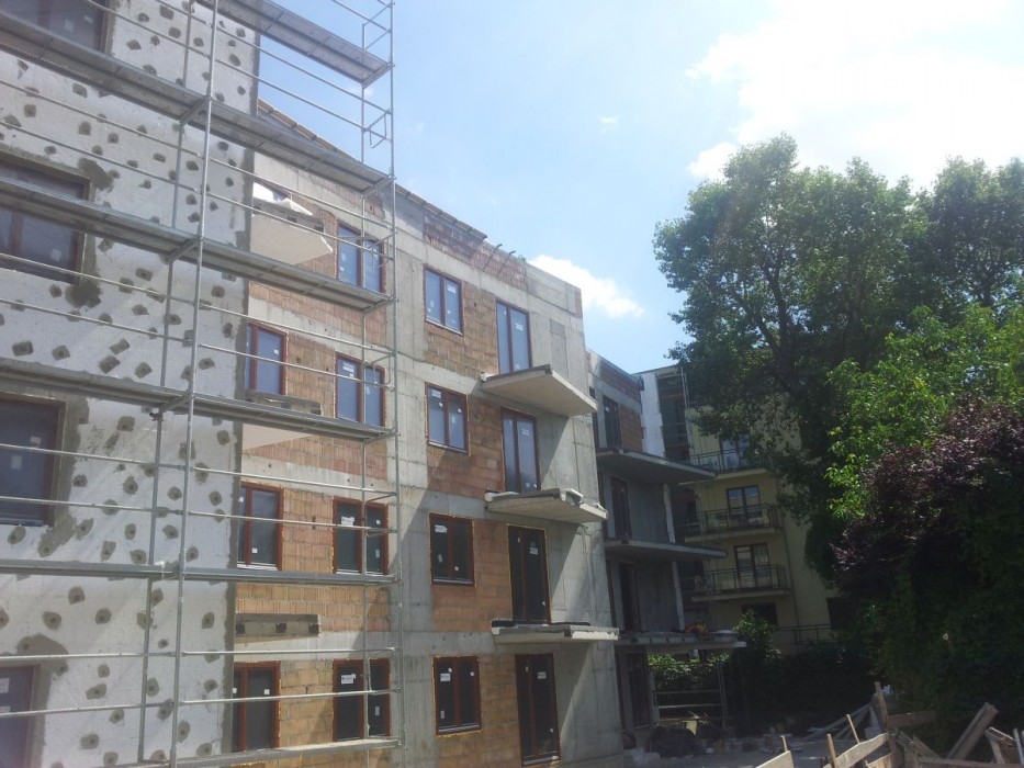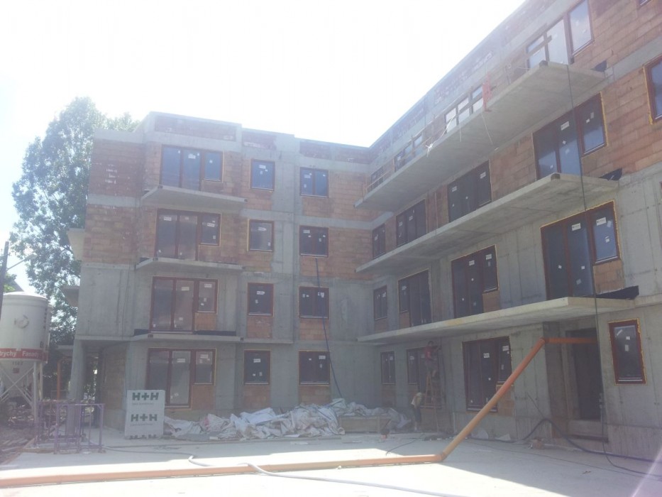 Trwa tynkowanie mieszkań w klatce A na piętrach II, III i IV. Wykonywane jest ocieplenie budynku od strony północno - zachodniej i południowo - zachodniej (nad wjazdem do garażu), oraz zakończono w 80% wykonywanie ocieplenia stropu garażu podziemnego. Zakończono 90% instalacji wod.kan, c.o. i elektrycznej w mieszkaniach oraz montaż wszystkich okien.