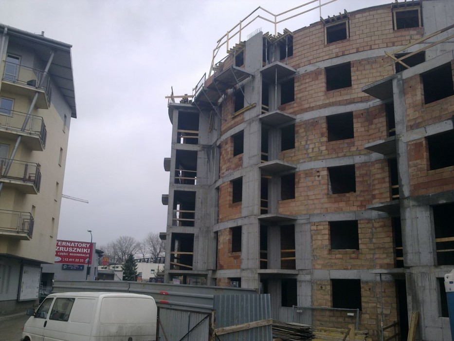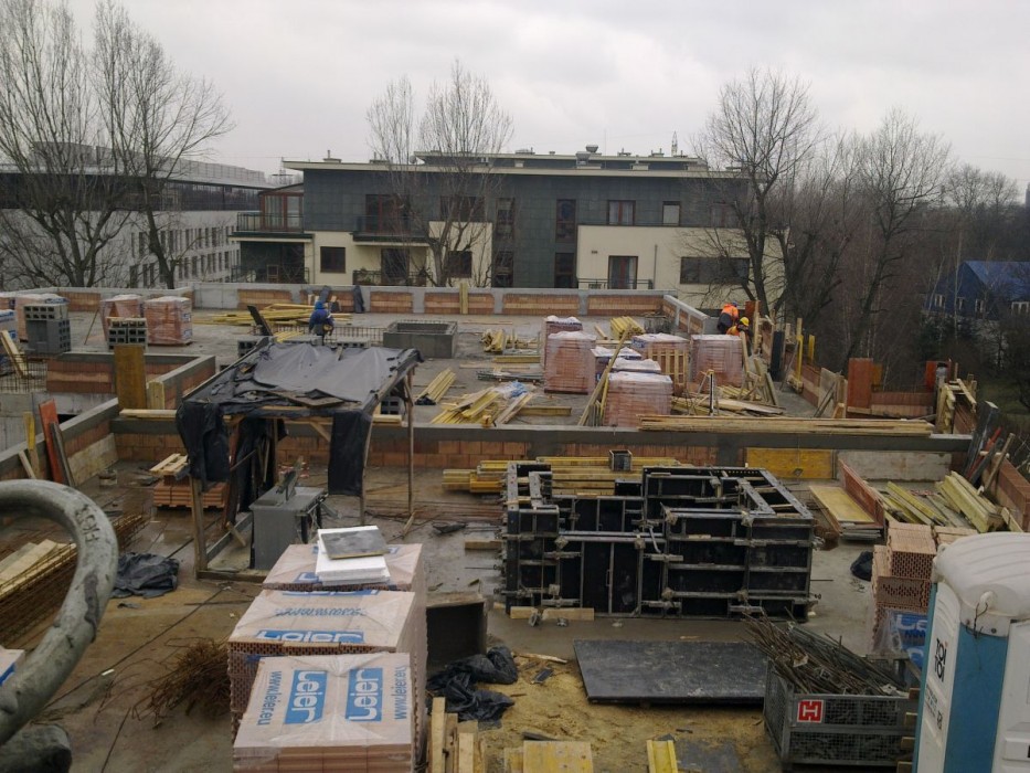 Konytnuowane były prace murarskie we wszystkich klatkach budynku. Z placu budowy zwiezione została większość szalunków ze względu na końcówkę prac związanych z wylewaniem kolejnych stropów budynku.