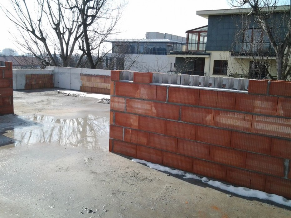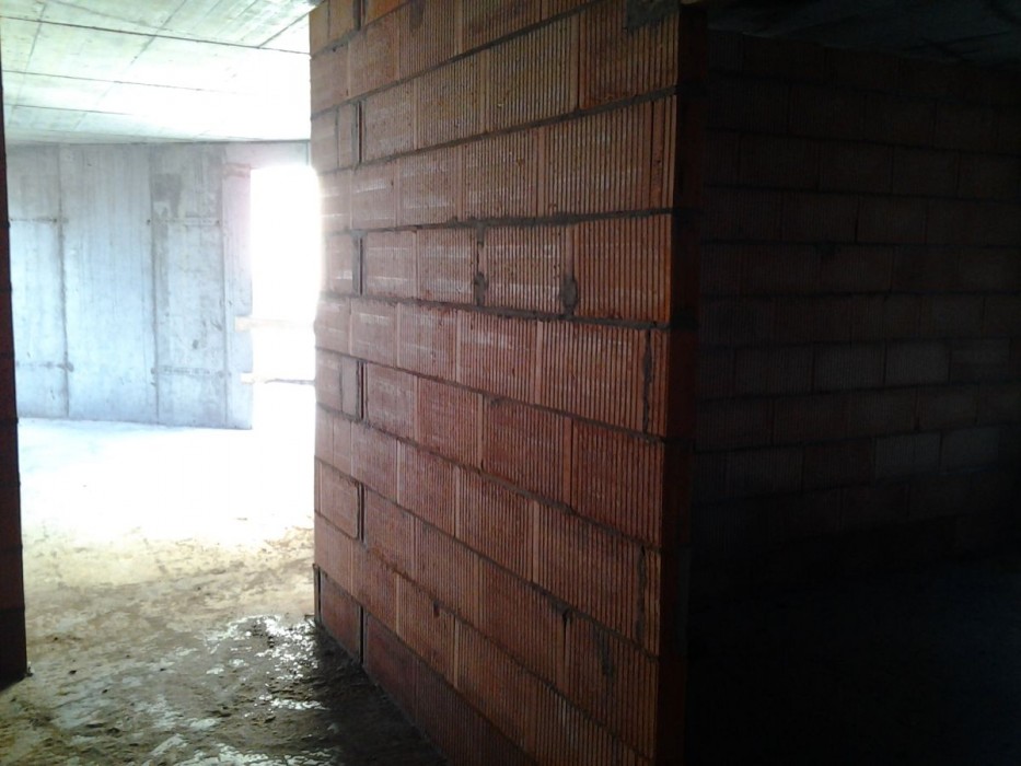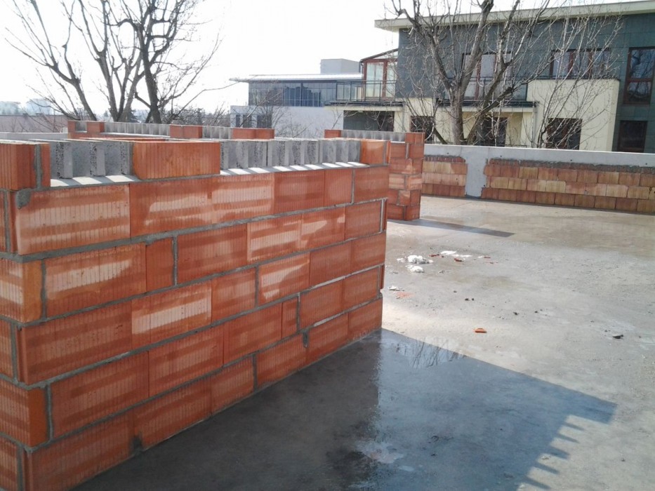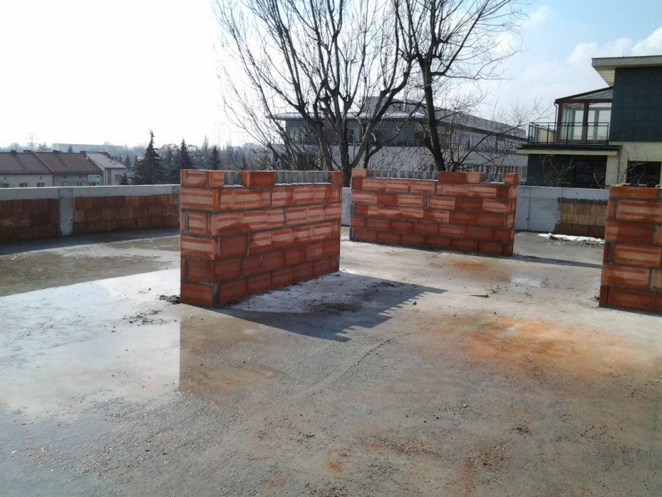 Wykonano 85% ścianek działowych w całym budynku oraz 50% obmurówek kominów.