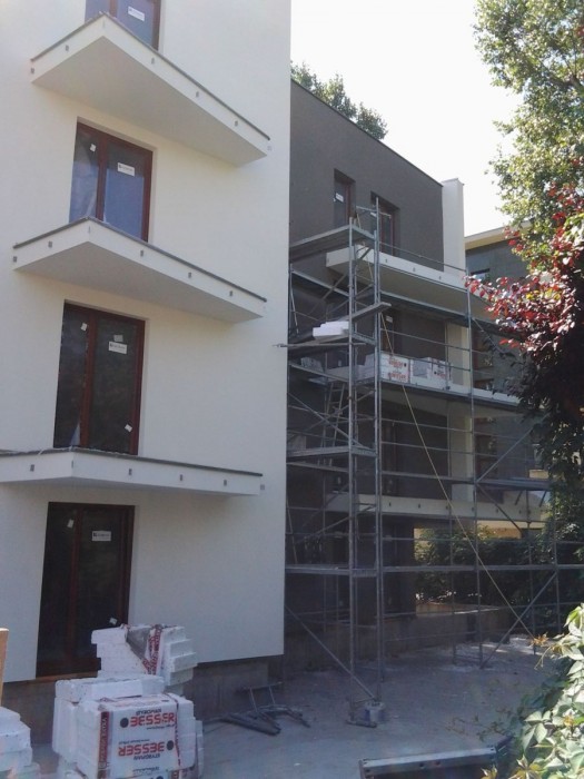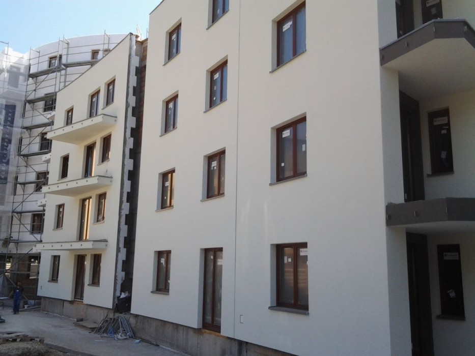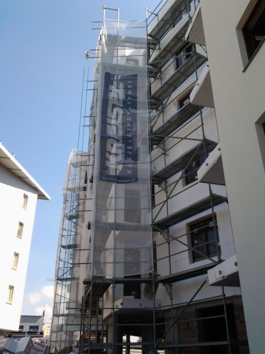 Rozpoczęto prace elewacyjne na klatce A - ocieplenie budynku. Wykonano całość elewacji klatek B i C od strony północno - zachodniej. Zakończono tynkowanie części wspólnych w klatce A, trwa tynkowanie mieszkań w klatkach B i C. Rozkładany jest styropian przed wykonaniem wylewek w klatce A, same wylewki rozpoczą się w przyszłym tygodniu.