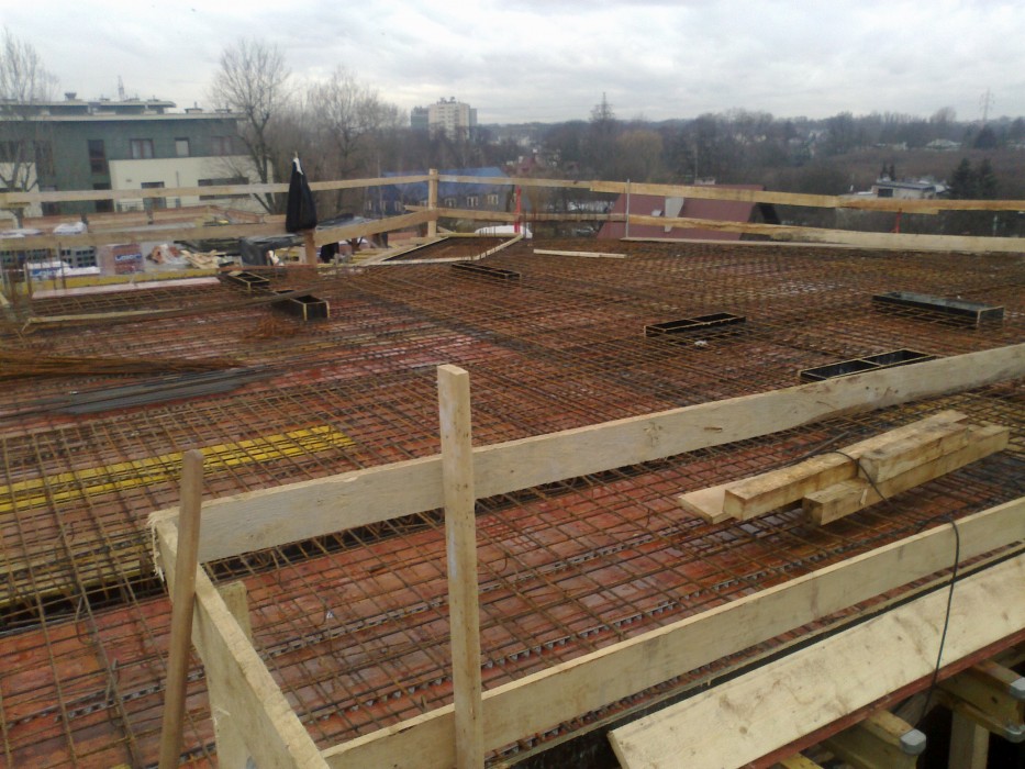 Zazbrojono strop nad IV piętrem klatki A. Trwa kontynuacja prac murarskich. Zazbrojono ścianki attykowe nad klatką B i C. Wykonywana jest wentylacja grawitacyjna na klatkach A,B i C. Na przyszły tydzień zaplanowano wylanie stropu nad V kondygnacją klatki A.