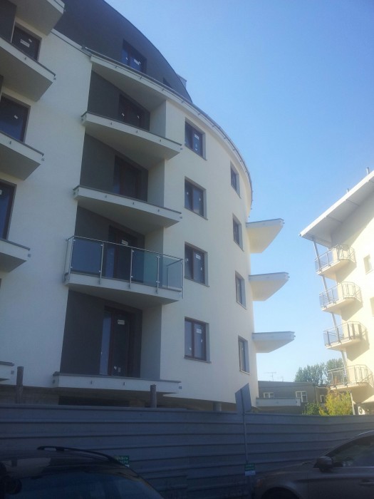 Prace elewacyjne dobiegają końca, do wykonania pozostała część przy wejściu do klatki C, rozpoczęto montaż barierek na balkonach wraz z wypełnieniami ze szkła bezpiecznego.